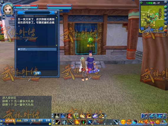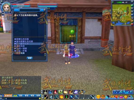 2、在七侠镇燕小六处接取任务“五一豪华礼包”兑换礼包